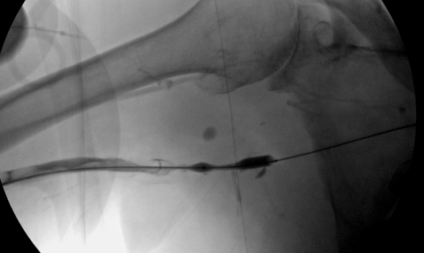Balloon dilation of critical venous stenosis distal to the AV graft.