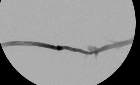 Venous limb stenosis after dilation ← Previous Right arm venogram post intervention: complete elimination of the stenosis.