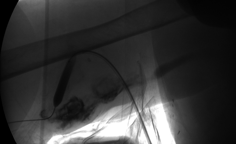 Dilating proximal and mid stenoses ← Previous Next → Image during intervention: angioplasty of 1st and 2nd stenoses.