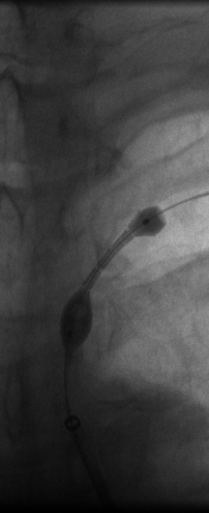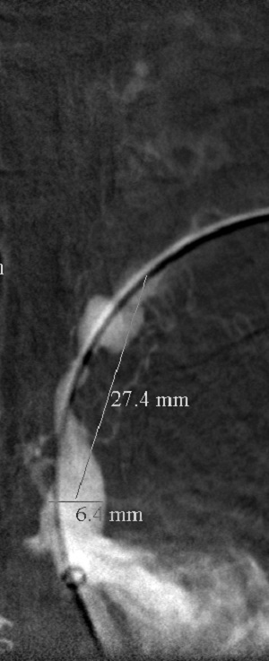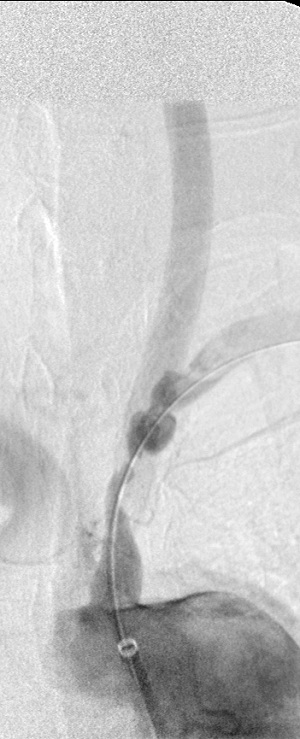 The 4 images you see above were recorded by me during primary stenting of irregular atherosclerotic stenosis of the left subclavian artery in a 54-year-old hispanic female who was referred to my interventional radiology clinic for management of the stenosis. She had presented to her primary care physician with symptoms of hindbrain ischemia upon using her left upper limb and earlier workup confirmed left subclavian arterial stenosis. The 2 top images illustrate the character and severity of her disease, the first image in the bottom row shows the process of balloon-expandable stenting of the disease, while the 2nd image in the bottom row reveals complete elimination of the stenosis and reappearance of the left vertebral and internal mammary arteires, which were invisible on the pre-intervention angiograms reflecting the severity of the stenosis.